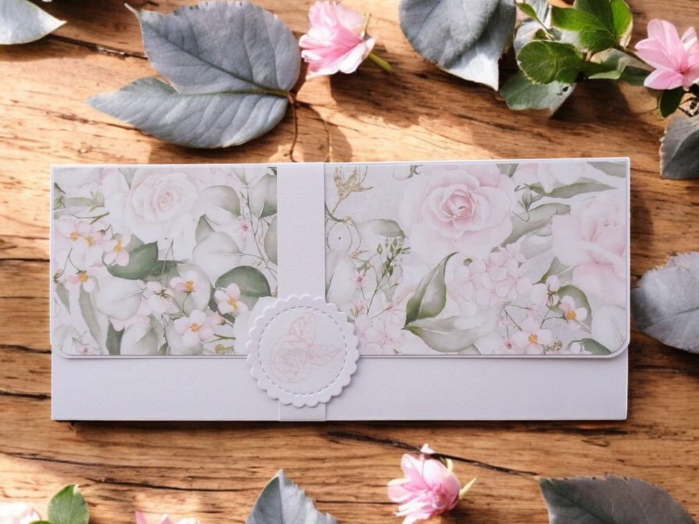 Tato ručně vyráběná obálka zaujme svým něžným designem inspirovaným přírodou.