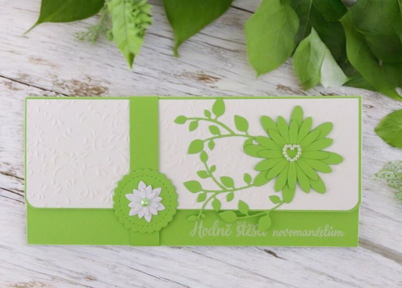 Elegantní darovací obálka na peníze, ideální pro svatební příležitosti.