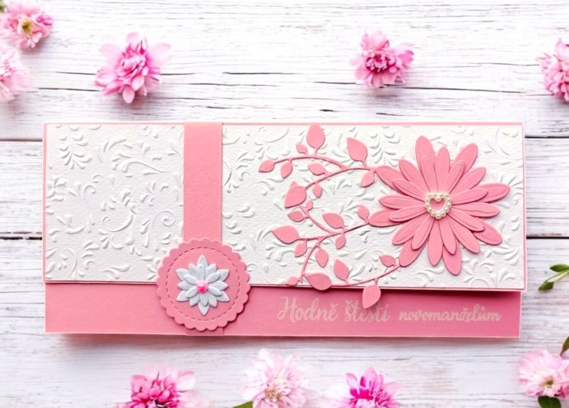 Elegantní darovací obálka na peníze, ideální pro svatební příležitosti.